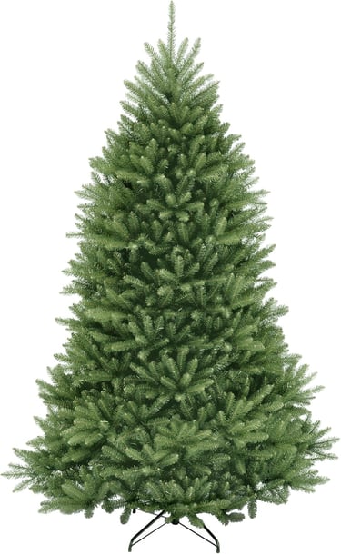 This Dunhill Fir Full Artificial Green Christmas Tree is 6.5 feet tall with a 53 inch base diameter. Featuring hundreds of individually crafted branch tips to create full bodied branches, this tree is designed to look and feel lifelike.